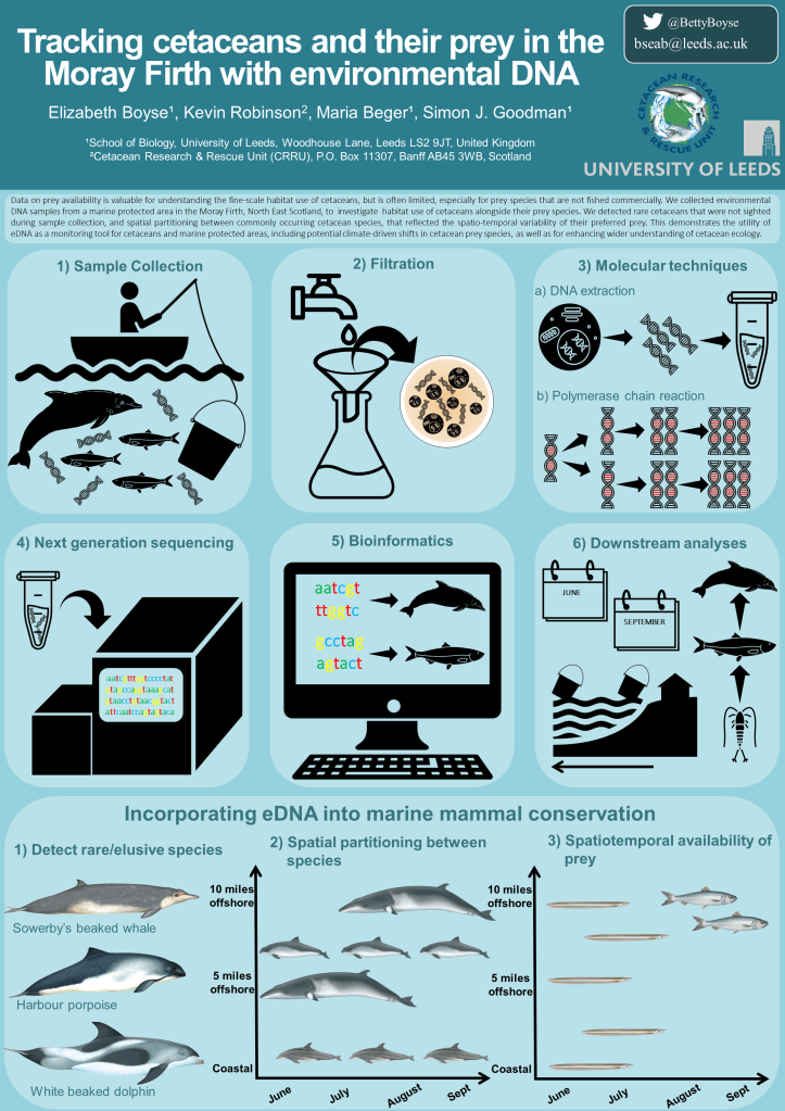 Boyse, E., Robinson, K. P., Beger, M., Carr, I. M., Taylor, M., Valsecchi, E., & Goodman, S. J. (2024). Environmental DNA reveals fine-scale spatial and temporal variation of marine mammals and their prey species in a Scottish marine protected area. Environmental DNA, 6, e587. https://doi.org/10.1002/edn3.587